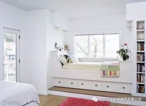 还有要注意的是一般情况在飘窗台上不要做太多高柜,这样柜体就会挡着阳光的照射。可以利用飘窗做书桌,矮柜,休闲区等,相对比较矮的柜体,这样可以让光线可以充足的照进卧室。这样就不影响采光。