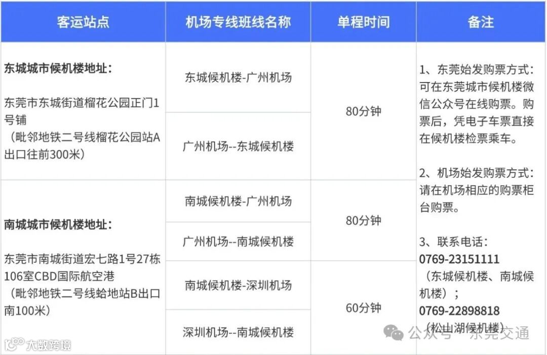 到东莞东城、南城城市候机楼