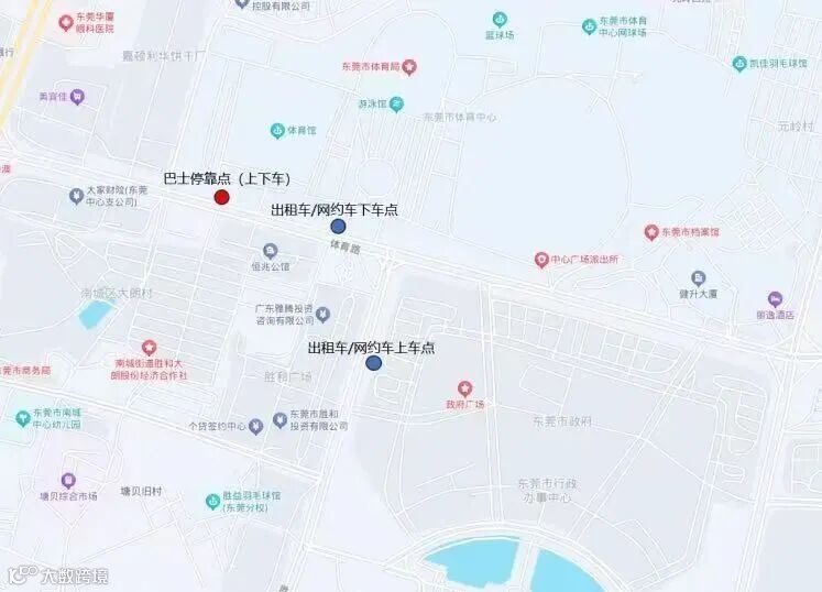 东莞市体育中心出租车停靠点,下车后步行约100米至市体育中心南门进入会场。
