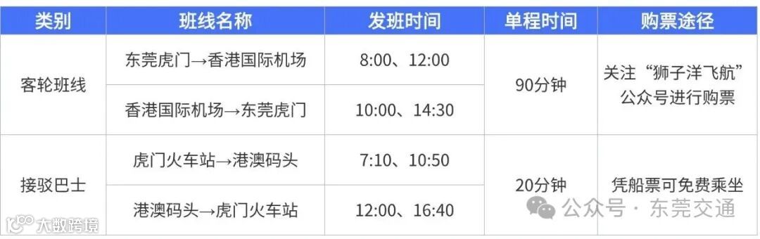 香港国际机场⇄东莞虎门客轮