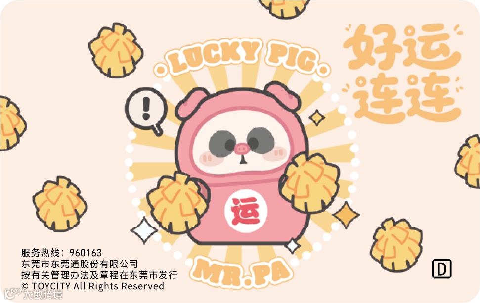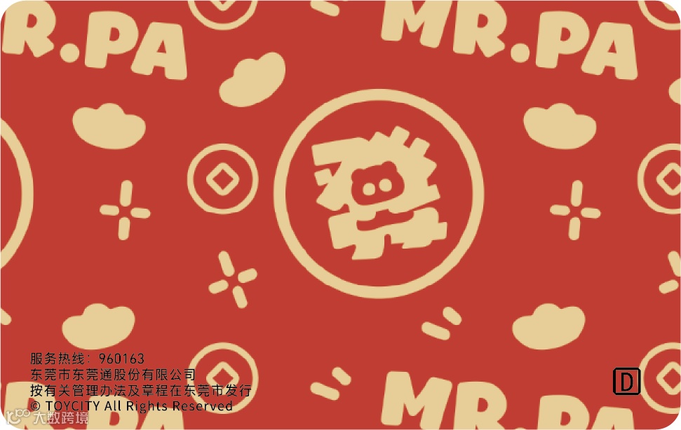 卡面正面耙老师拜年专属造型——圆滚滚的耙老师拿着金元宝,手持祝福对联;卡片背面以温暖中国红为主色调,有元宝、钱币元素,卡面自带新春纳福元素,不仅是通勤神器,更是新年开运小信物。