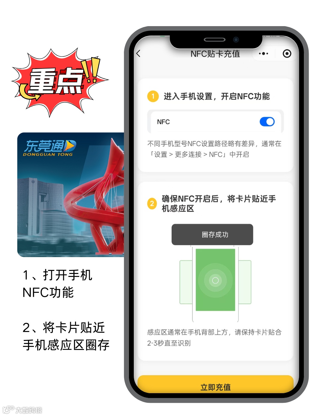 1、支持东莞通普通卡和学生卡充值,暂不支持东莞通全国交通一卡通充值;