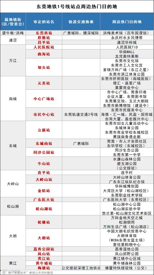 小通整理了东莞轨道1号线