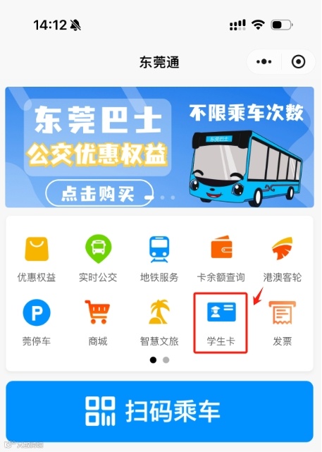 ①打开东莞通APP/小程序【学生卡】