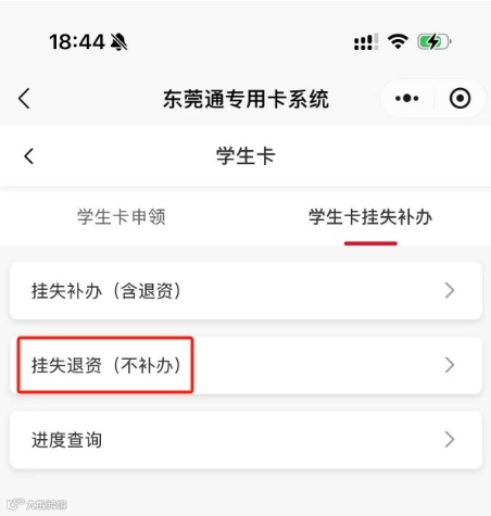 ③点击【学生卡挂失补办】—【挂失退资(不补办)】,并按操作页面填写相关资料,静候卡余额退资。