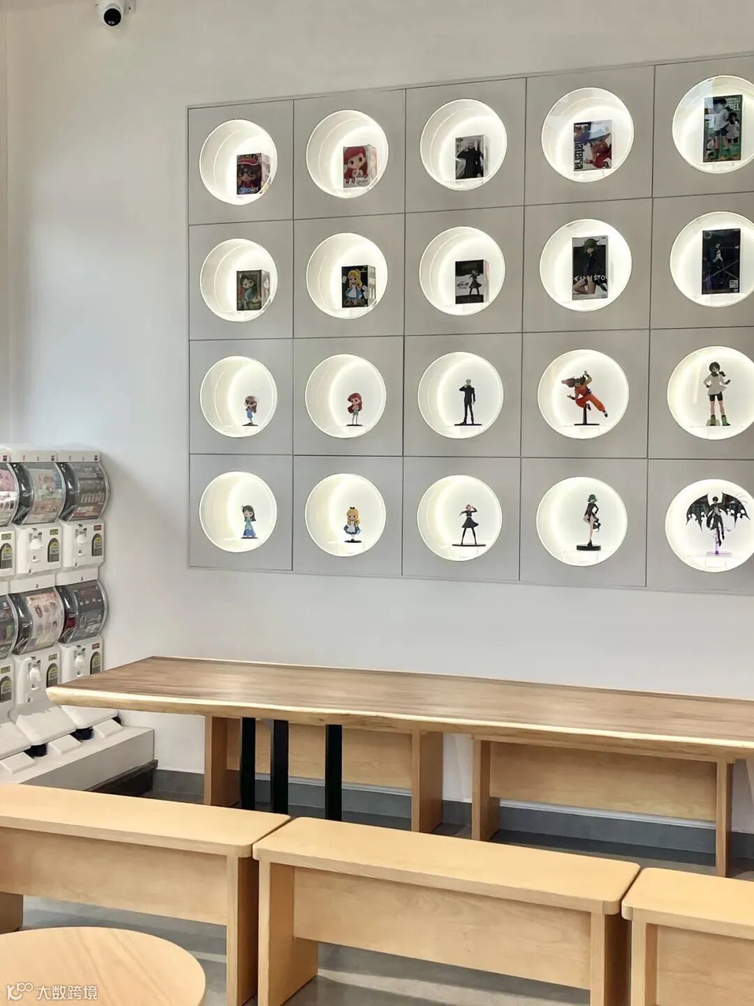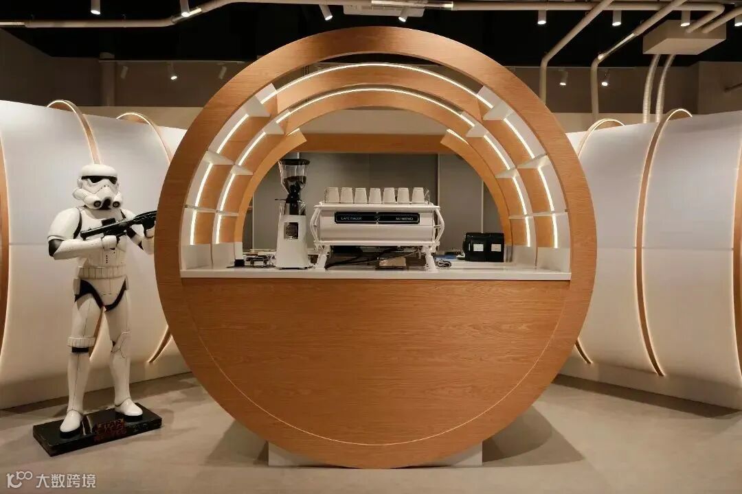 一楼的咖啡店“咖潮啡”装潢同样充满科技感,可以边品尝咖啡边享受扭蛋带来的刺激和惊喜,墙上圆形格子里的各种手办、店里设置的机器人模型也很适合打卡出片。