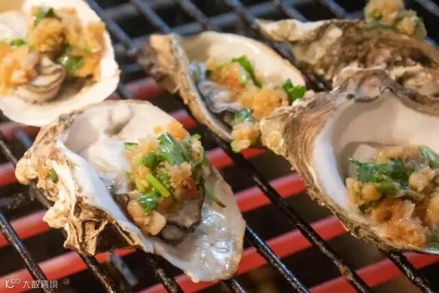 烤的滋滋作响的蒜蓉生蚝,肥美多汁