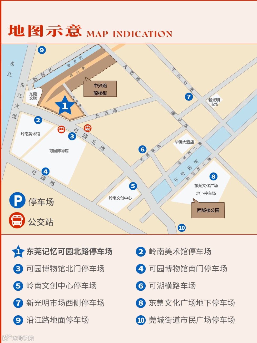 1.可园北路(公交站):下车后步行至中兴路骑楼街约需3分钟。