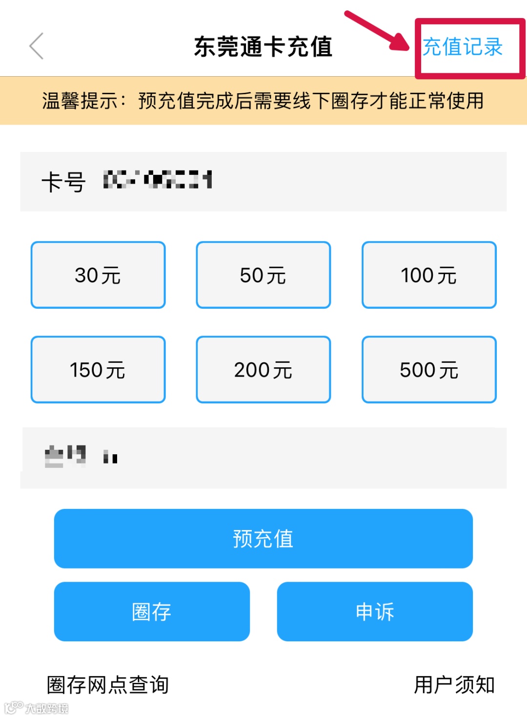 ▲东莞通实体卡充值过程