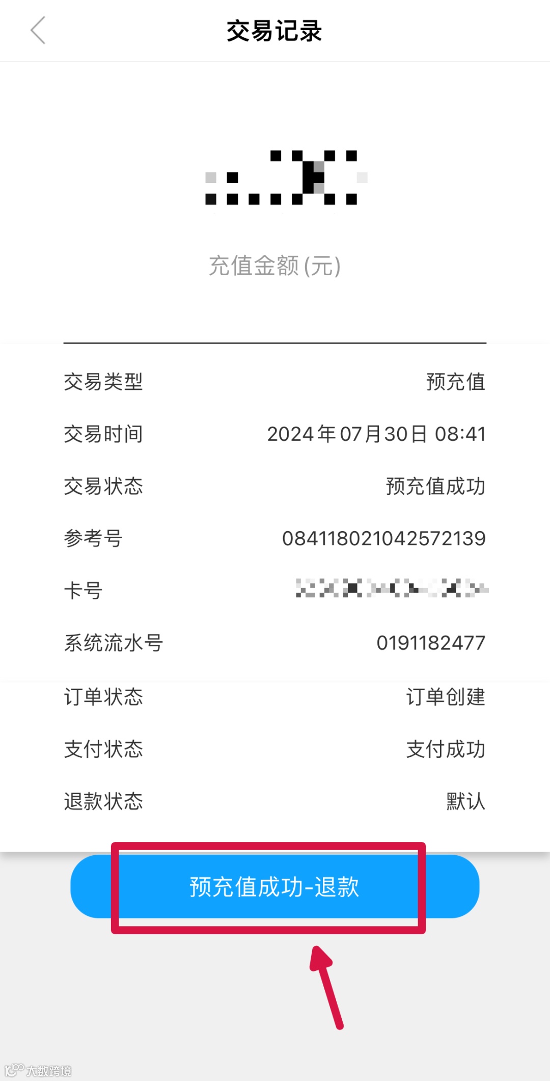 4. 点击【预充值成功-退款】,稍等片刻金额便会原路退回。