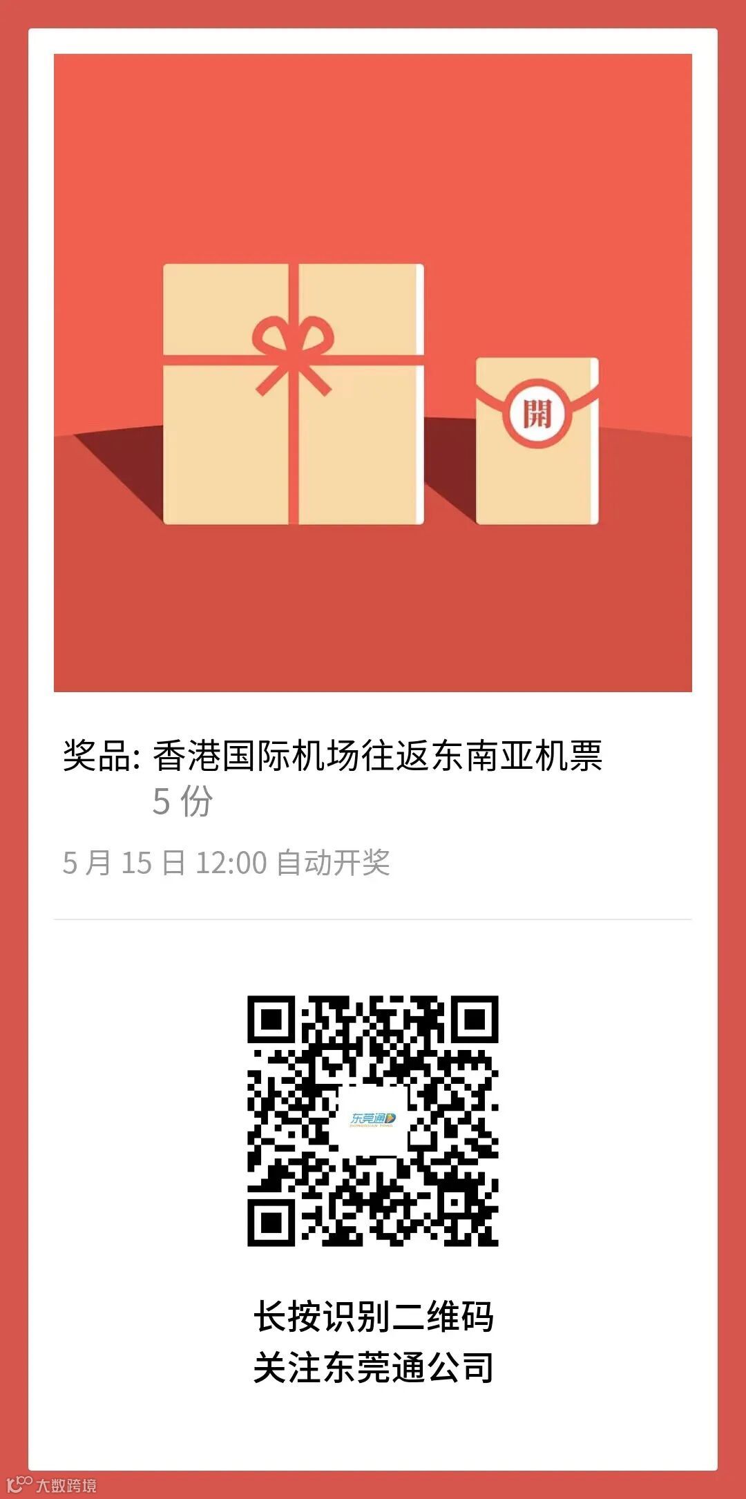结果揭晓:5月15日12:00,将抽取5位幸运粉丝,每位获得一套香港国际机场至东南亚往返国际航线机票。