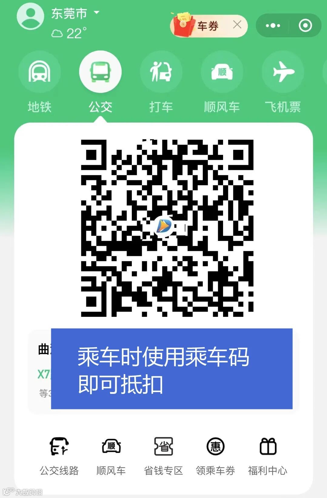 即可使用乘车码抵扣1.99元乘车券