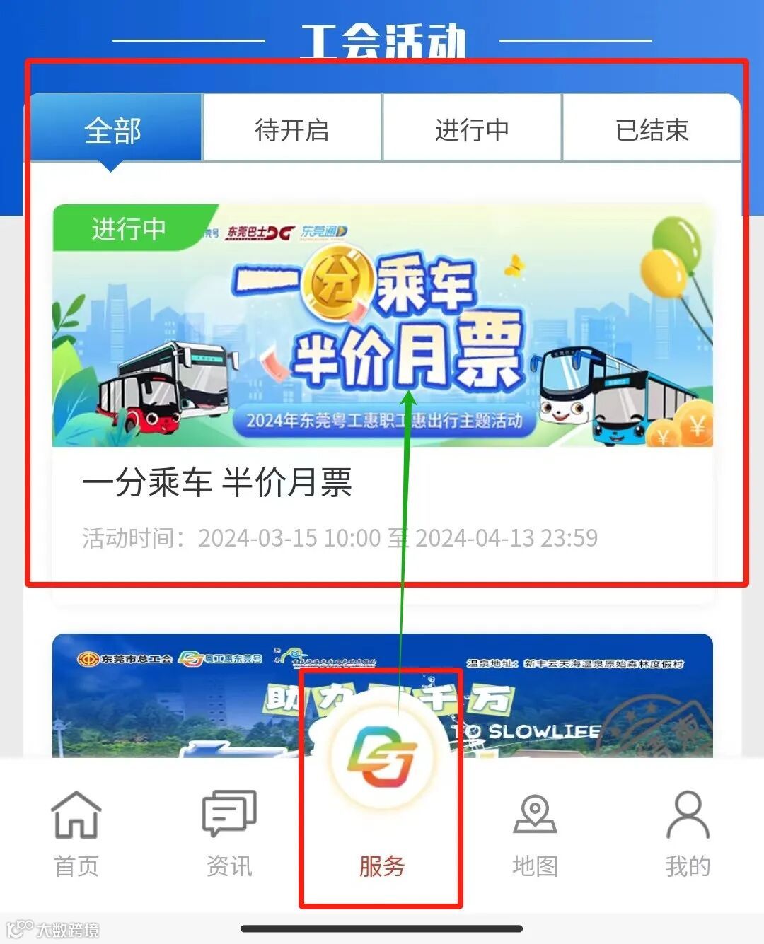 具体入口:进入“粤工惠东莞号”小程序--“服务”界面--工会活动--点击对应活动海报: