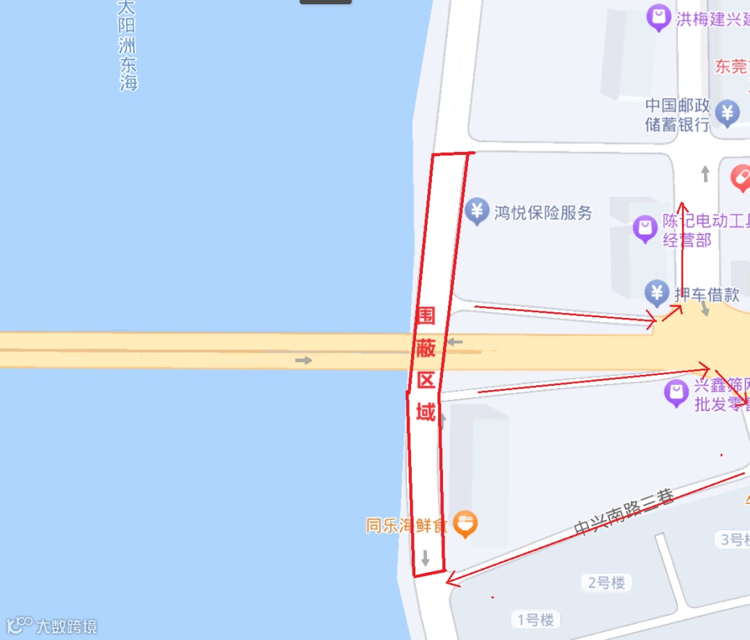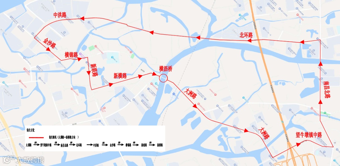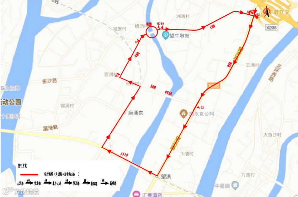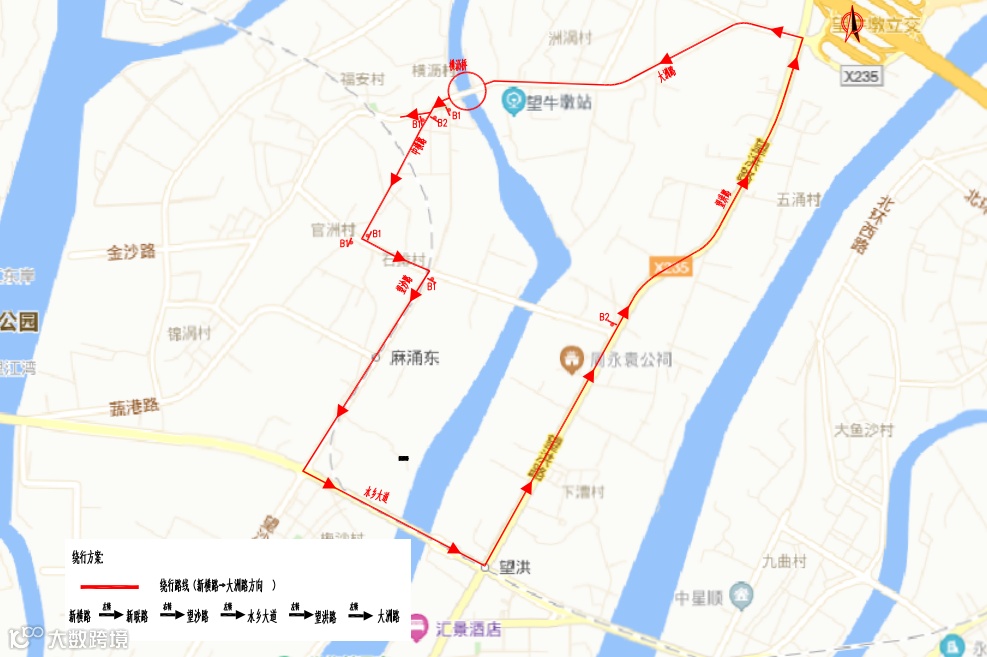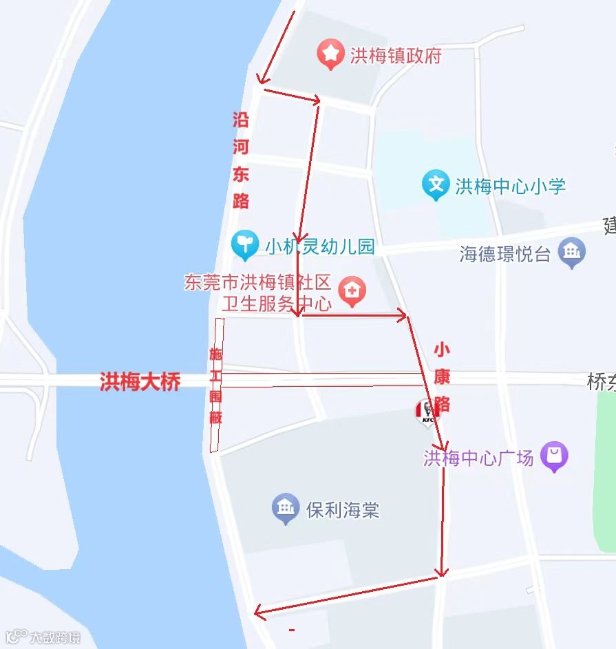 横沥桥施工期间实行全封闭交通管制,途经横沥桥路段的车辆请绕行望洪路、水乡大道、望沙路、中洪路。