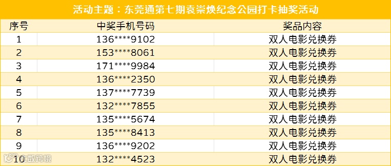 1、每期活动中奖结果将在东莞通微信公众号-菜单栏【中奖名单】 公布,并发送中奖短信通知,请获奖人留意短信。
