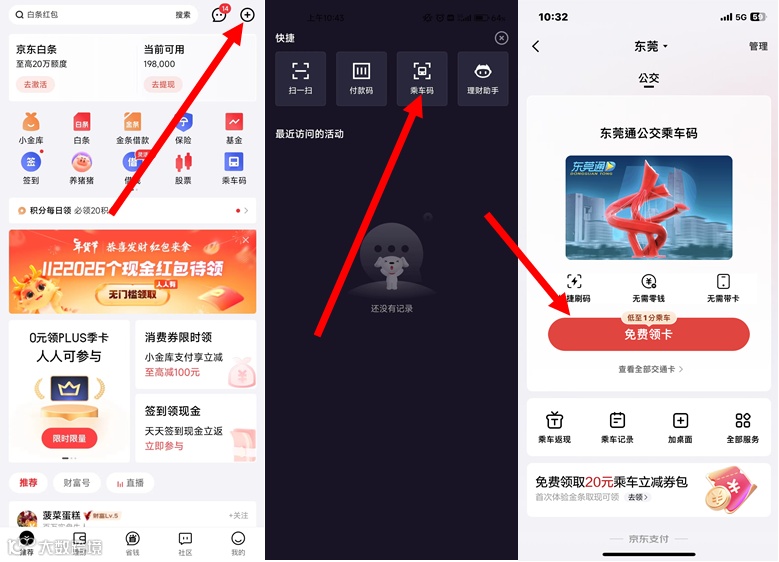 东莞地区未开通过「京东乘车码」用户,同一实名用户限领1次,领完为止,先到先得。