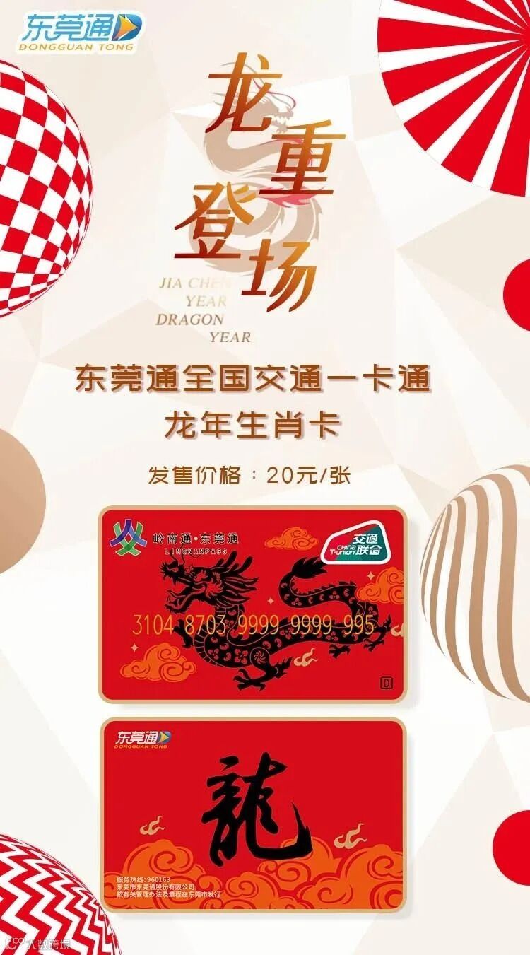 本次上线的龙年生肖卡是由东莞市东莞通股份有限公司发行的东莞市全国交通一卡通卡。除东莞外,还能在北京、上海、广州、深圳等336个地级以上城市使用,可以乘坐当地的公交、地铁、轮渡,甚至其它公共交通领域,真正实现“一卡在手,通行全国”。