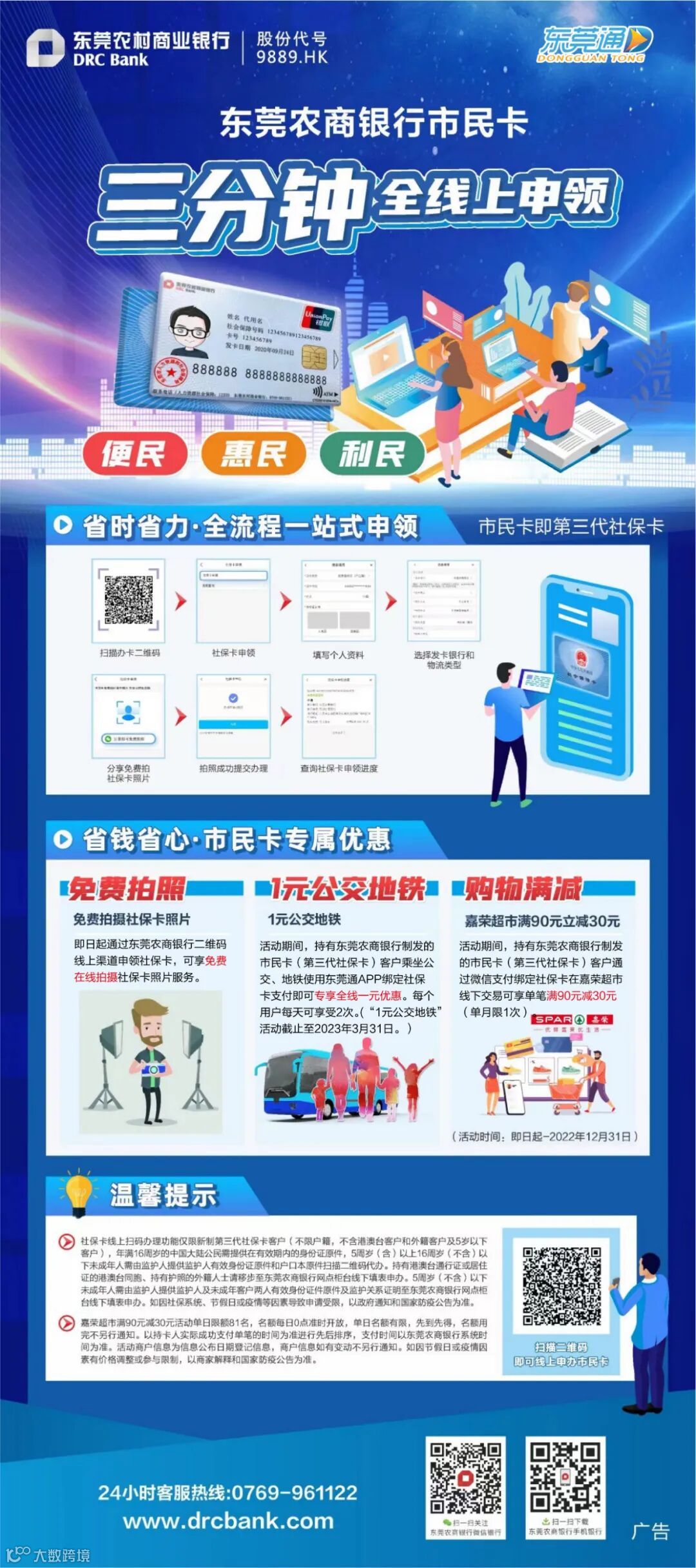 【东莞农商银行市民卡】1元乘公交地铁、购物满减......