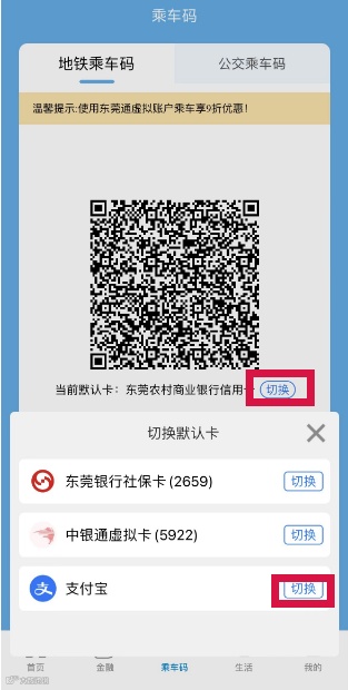 绑定后记得将乘车默认卡切换为支付宝,