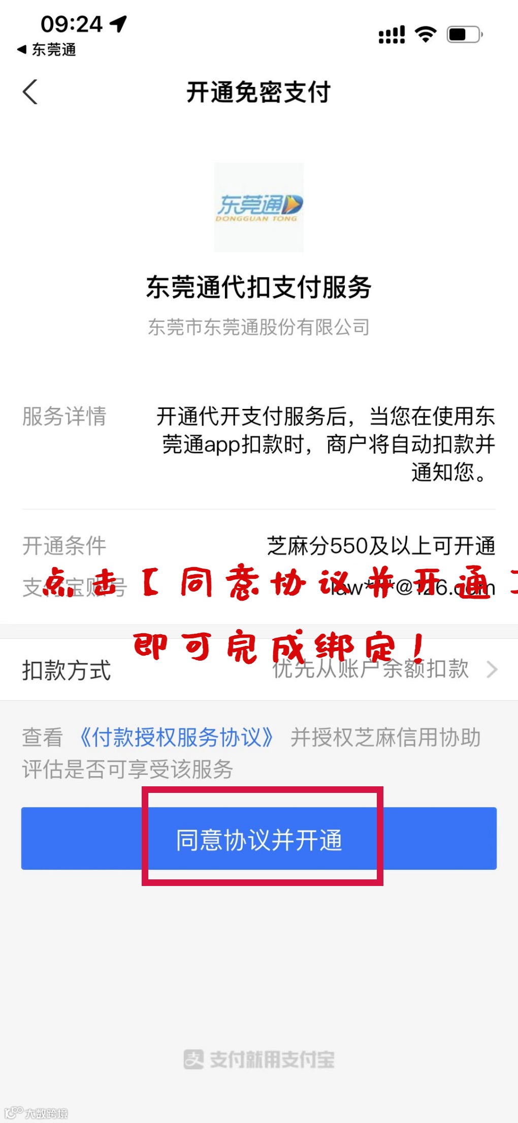 1.如需绑定支付宝代扣,请先下载或更新4.6.0版本的东莞通APP。