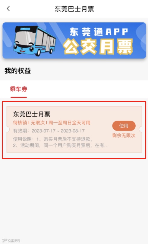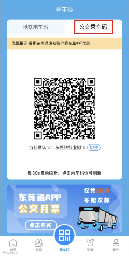 ▶购买月票后,直接在东莞通“公交乘车码”界面正常刷码,即可自动享受月票优惠。