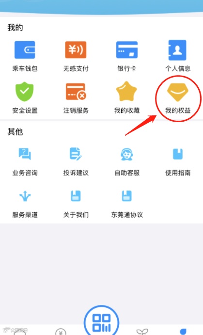 ▶东莞通APP首页右下角“我的”—“我的权益”,即可查看。