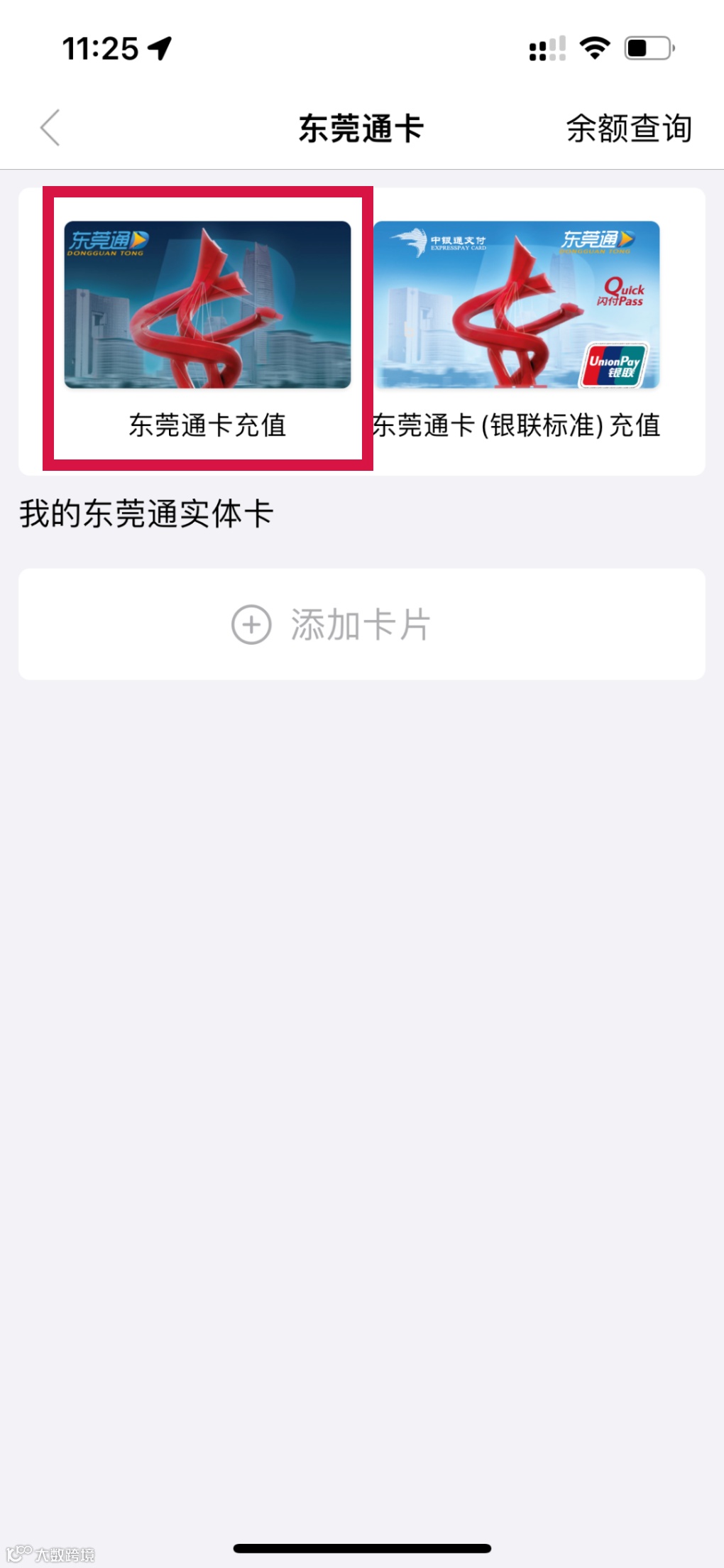 选择【东莞通卡充值】
