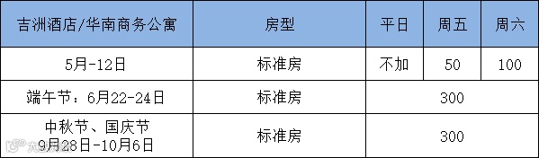 ◆ 平日不加收,周六加收150元/间/晚。
