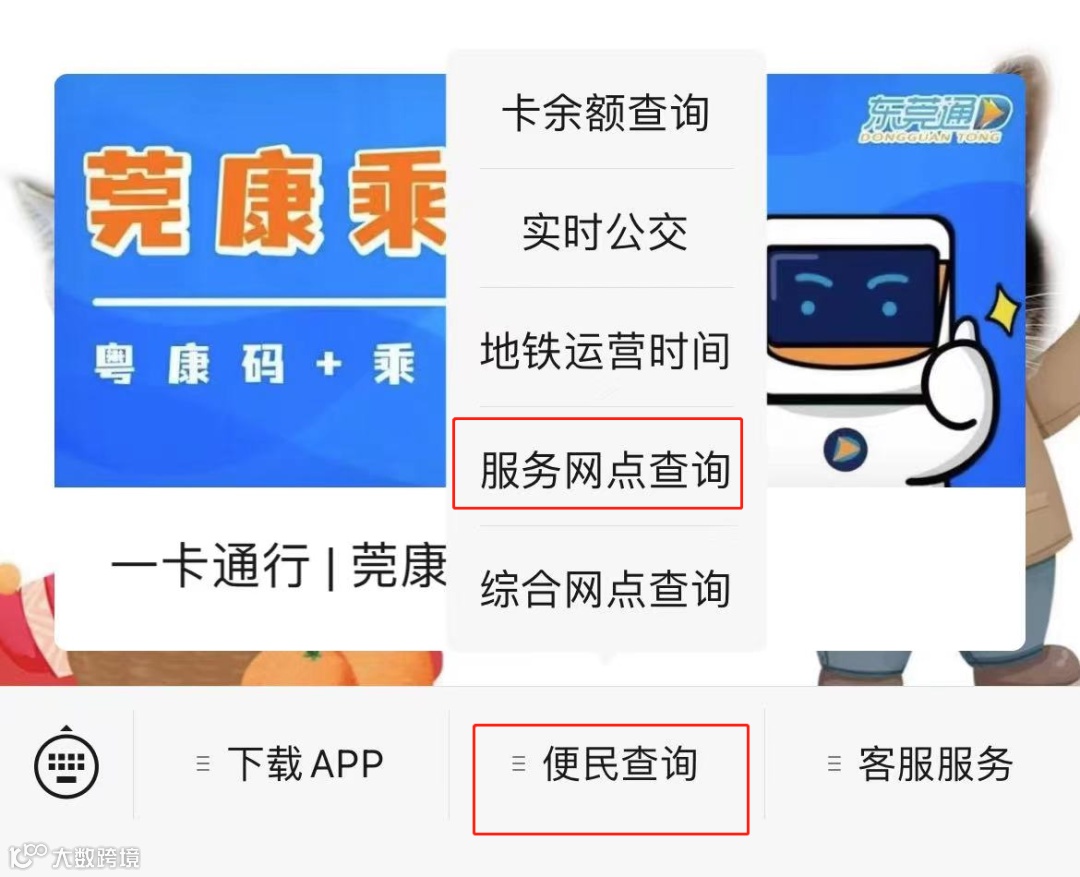 莞康乘车卡可在东莞通线下指定网点进行充值,网点地址可在东莞通微信公众号菜单栏-“便民查询”-“服务网点查询”进行查询。
