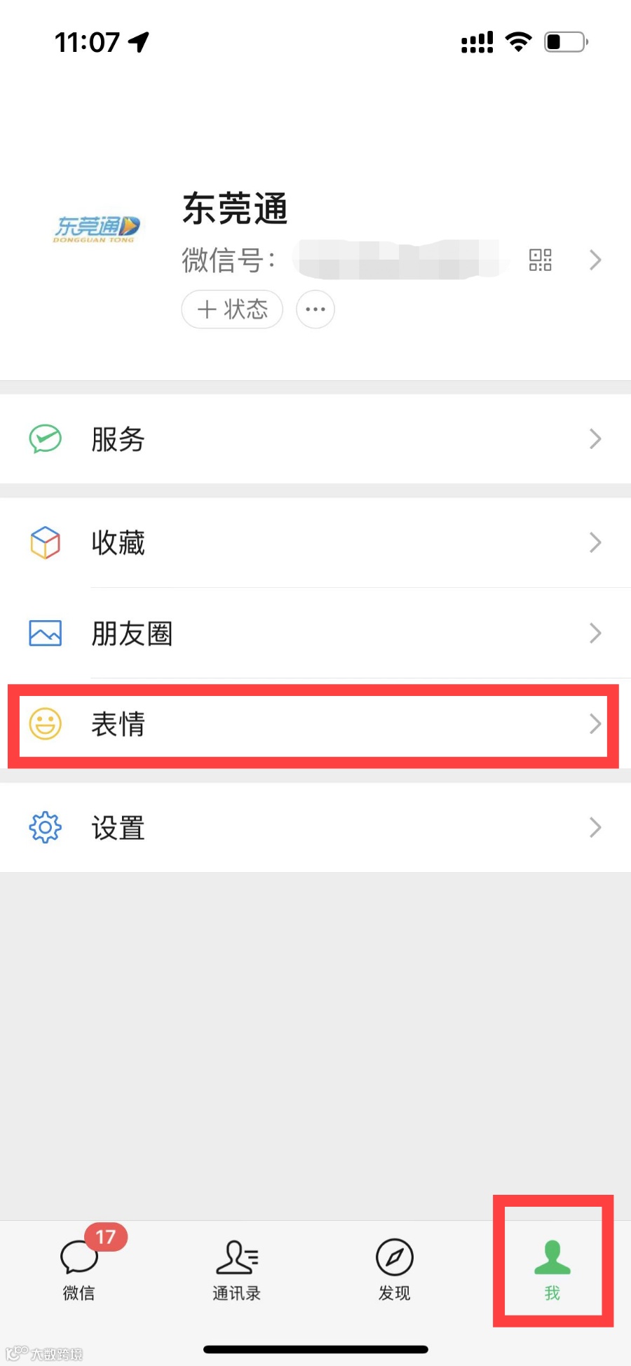 1 点击“我”-“表情”
