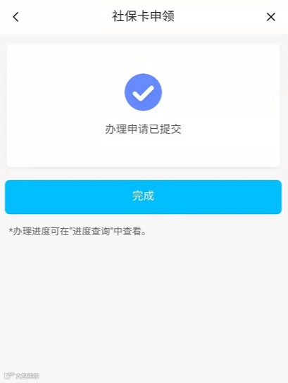 成功提交社保卡照片后,即完成线上申办操作啦!点击【制卡进度查询】可查看社保卡申领进度。