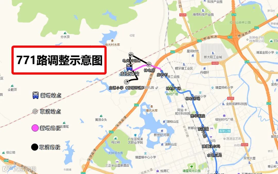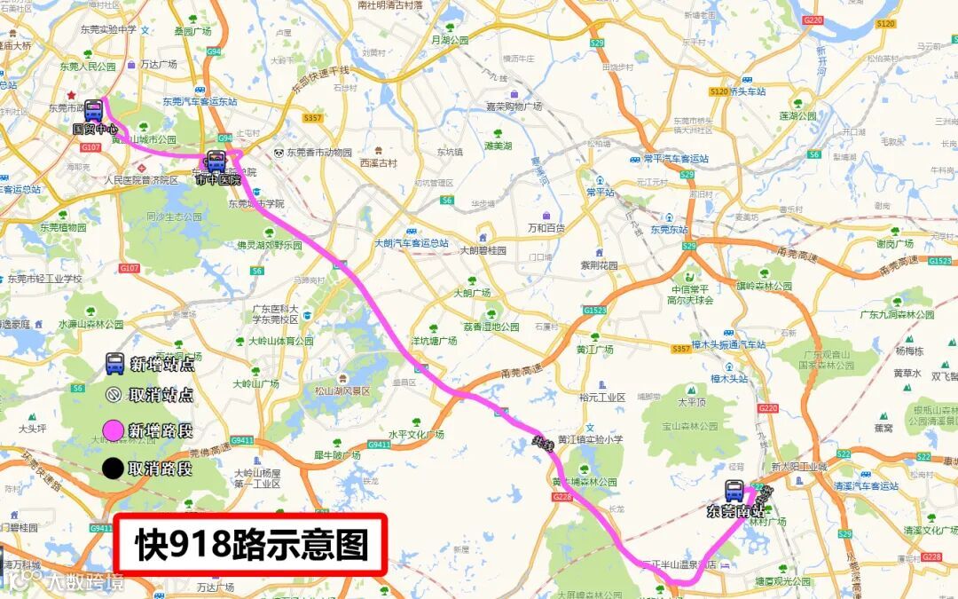 起讫点:由“林村公寓北门 — 东南部中心医院侧门”调整为“东莞南高铁站 — 东南部中心医院侧门”