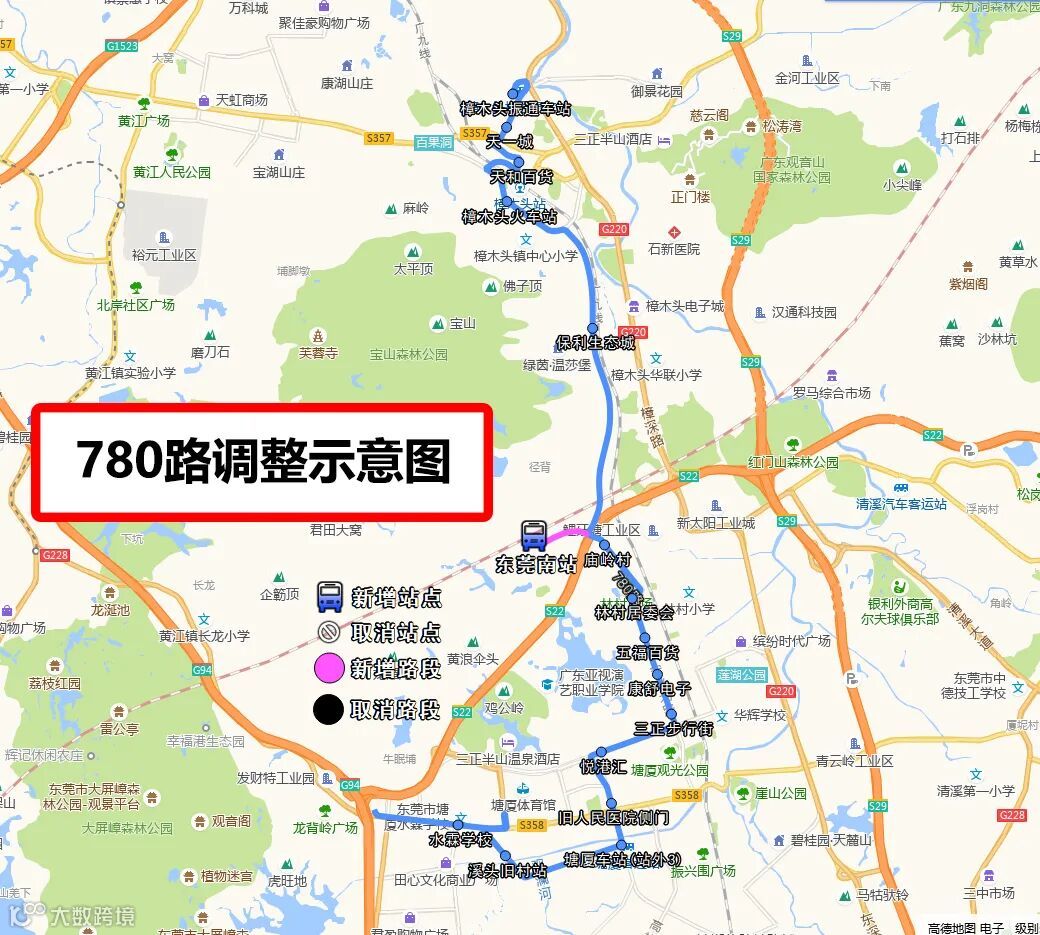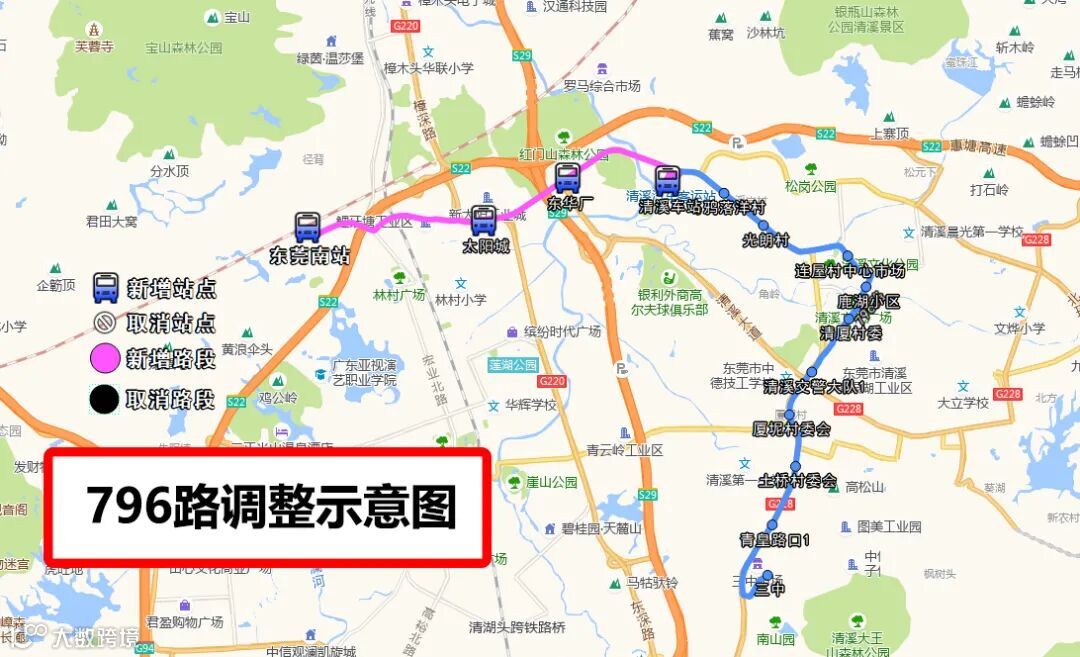 起讫点:由“清溪车站 — 清溪三中”调整为“东莞南高铁站 — 东莞南高铁站”(环线运行)