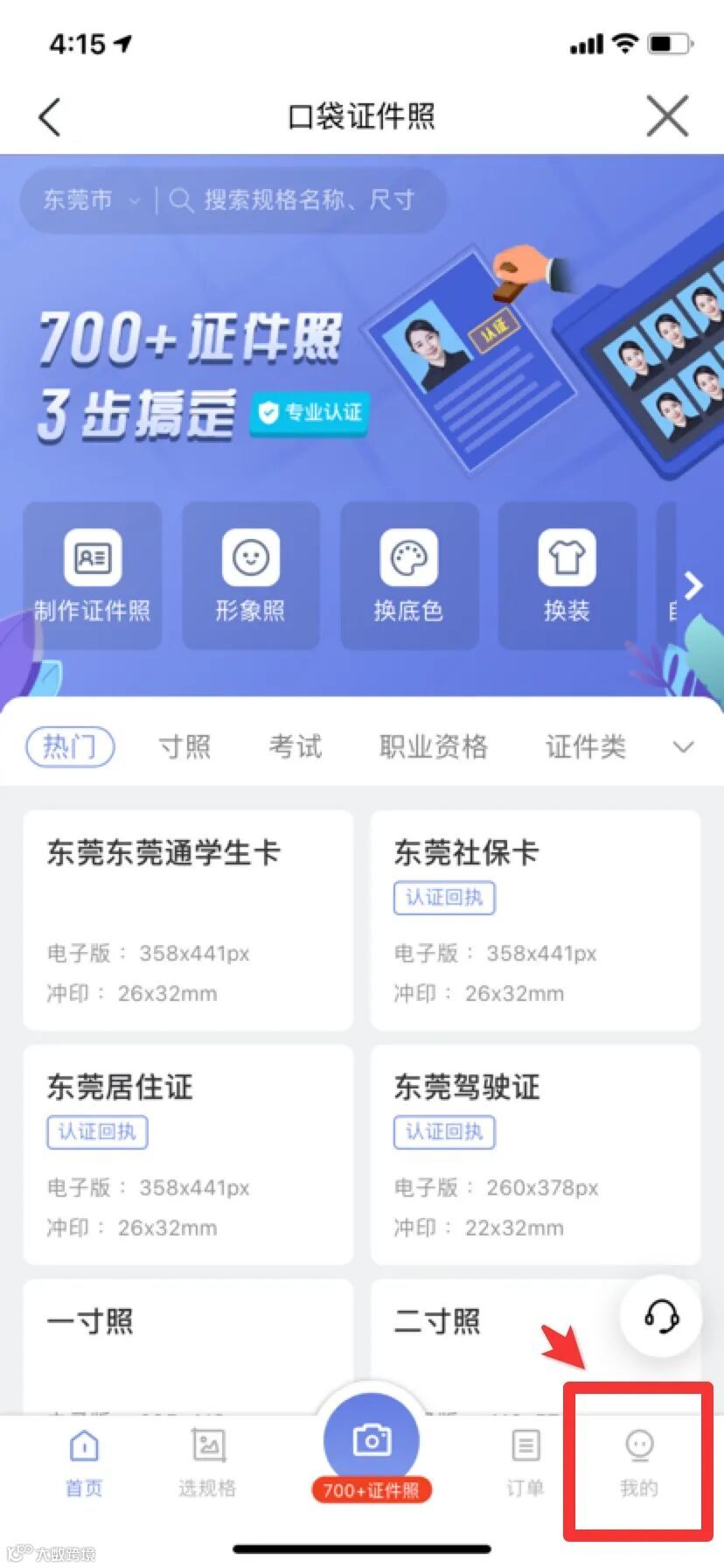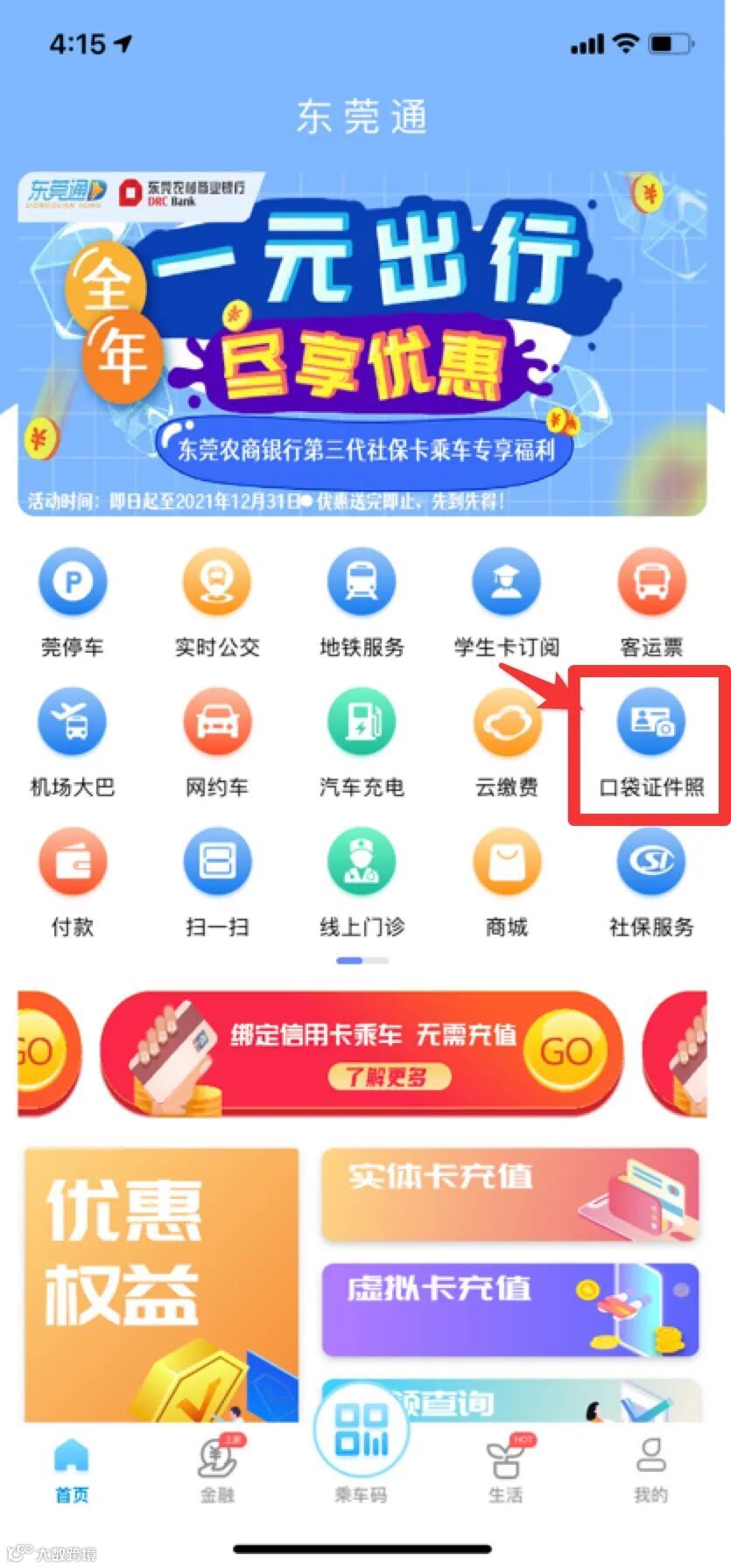 打开东莞通APP【口袋证件照】