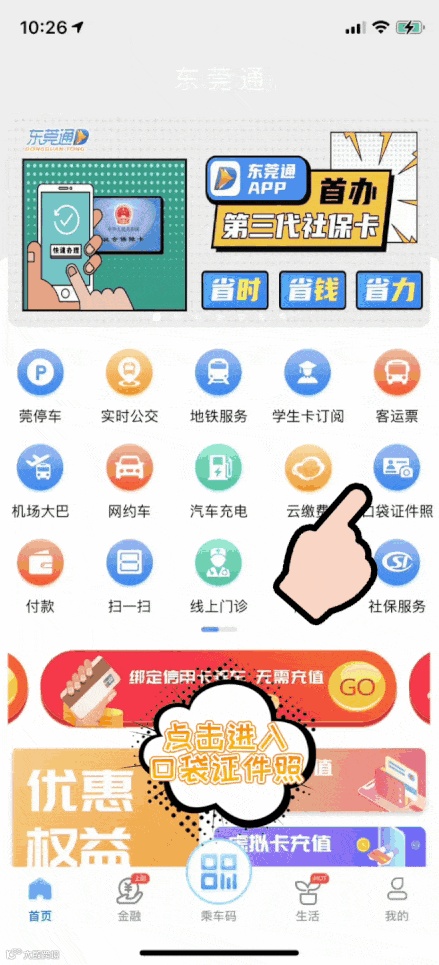 ① 东莞通APP首页进入【口袋证件照】