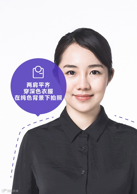 ③ 两肩平齐,穿深色衣服在纯色背景下拍照