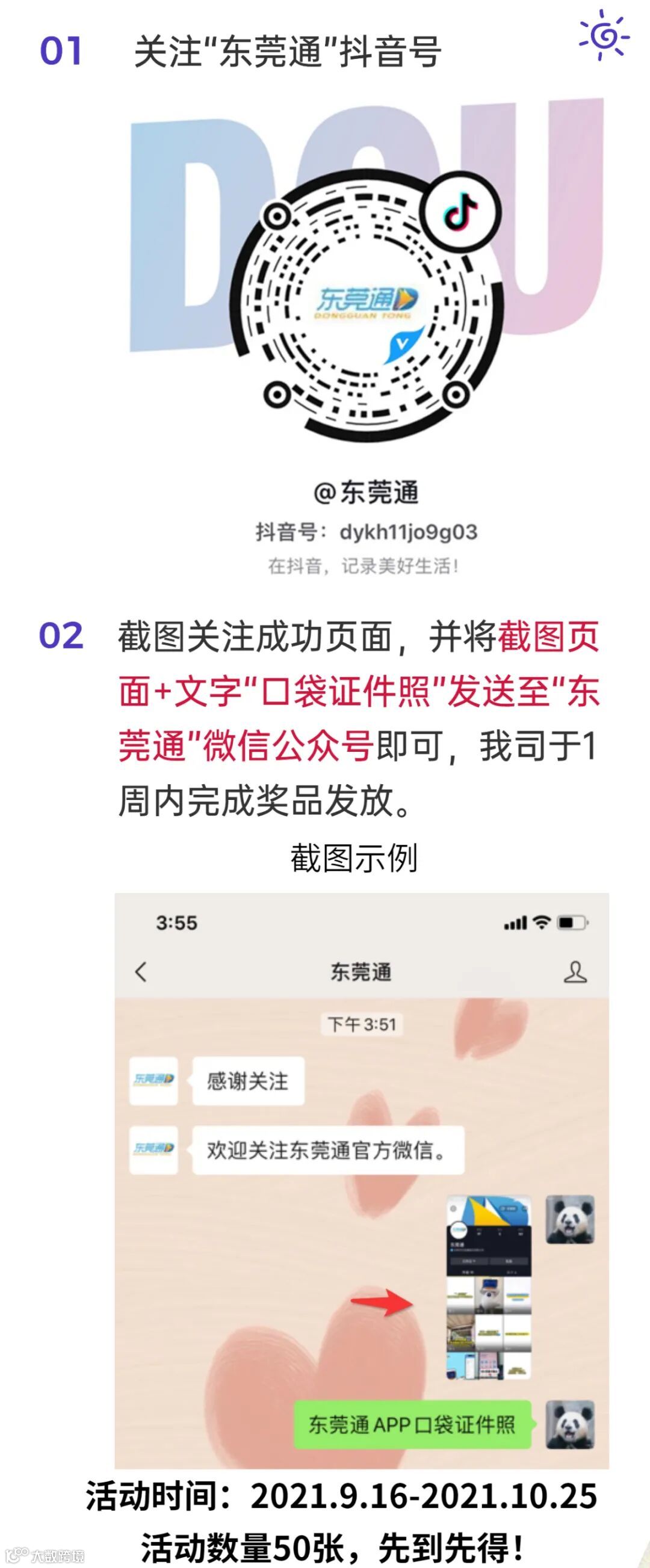 1、前50名参与成功用户将获得东莞通赠送的“非回执电子照免费抵扣券”。东莞通工作人员将在1周内将兑换码通过“东莞通”微信公众号发送至用户。