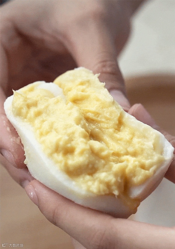 这款猫山王榴莲冰皮月饼,隔着冰皮就能闻到浓郁的榴莲味,尊贵的猫山王,必须送给最珍贵的人。