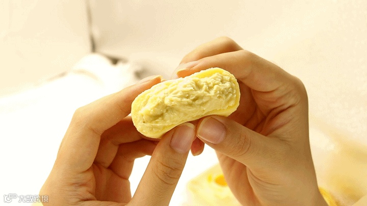 凹凸手感的包装和猫山王尊贵大气的身份超搭。圆鼓鼓的榴莲月饼,每一个非常饱满,感觉轻轻一戳内馅就要爆浆。