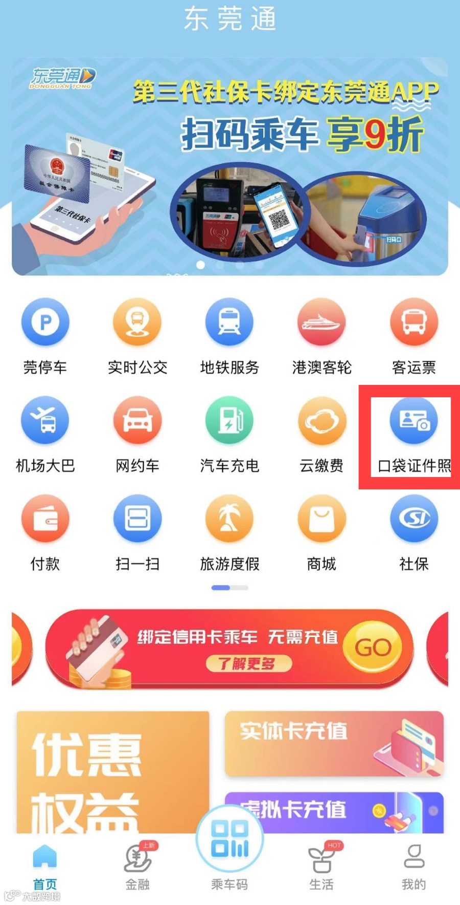①使用东莞银行第三代社保卡绑定东莞通APP