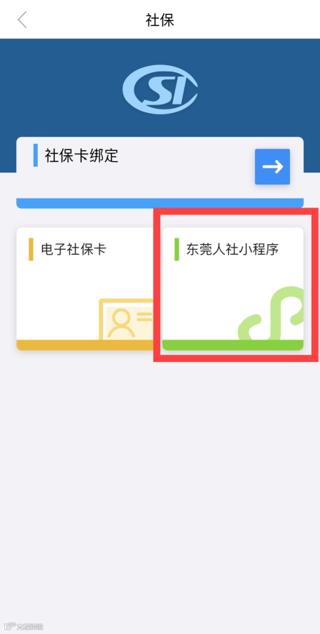 打开东莞通APP,进入首页“社保”功能,点击跳转“东莞人社”小程序进行“社保卡申请”。
