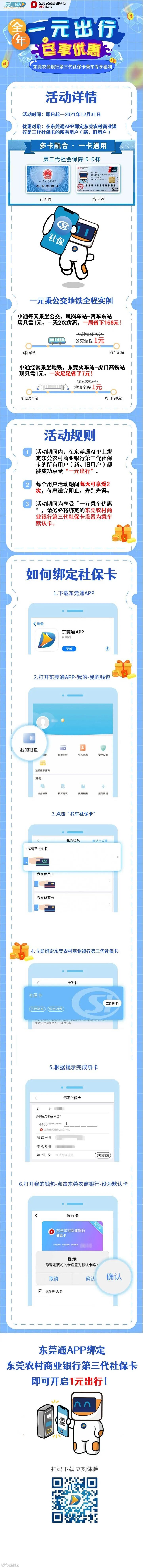 全年1元搭公交地铁全程,东莞通APP绑定第三代社保卡乘车优惠活动来啦!