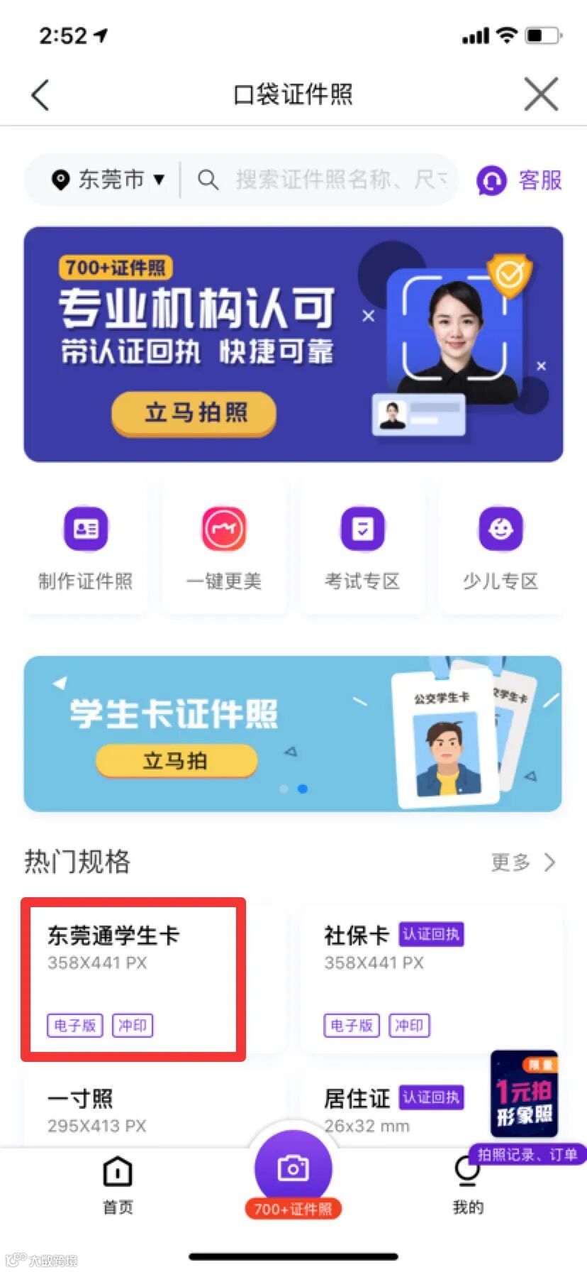 东莞通APP【口袋证件照】可以拍东莞通学生卡照片啦,在线获得电子照片,不用专门跑到照相馆,在家也可以拍!