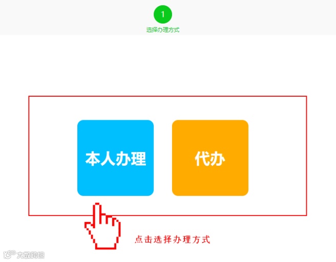 2、在【选择办理方式】页面选择业务办理类型