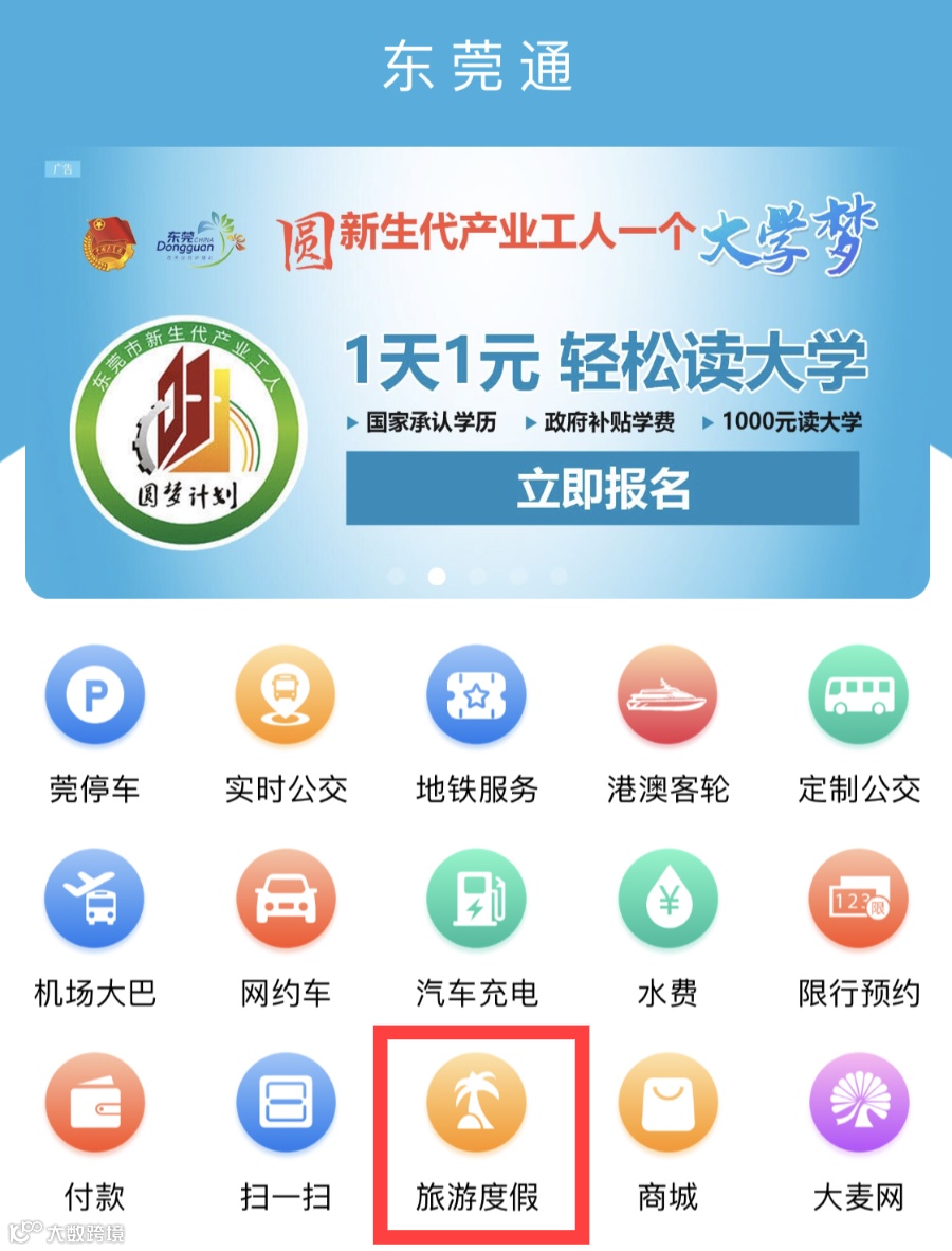 在东莞通APP【旅游度假】