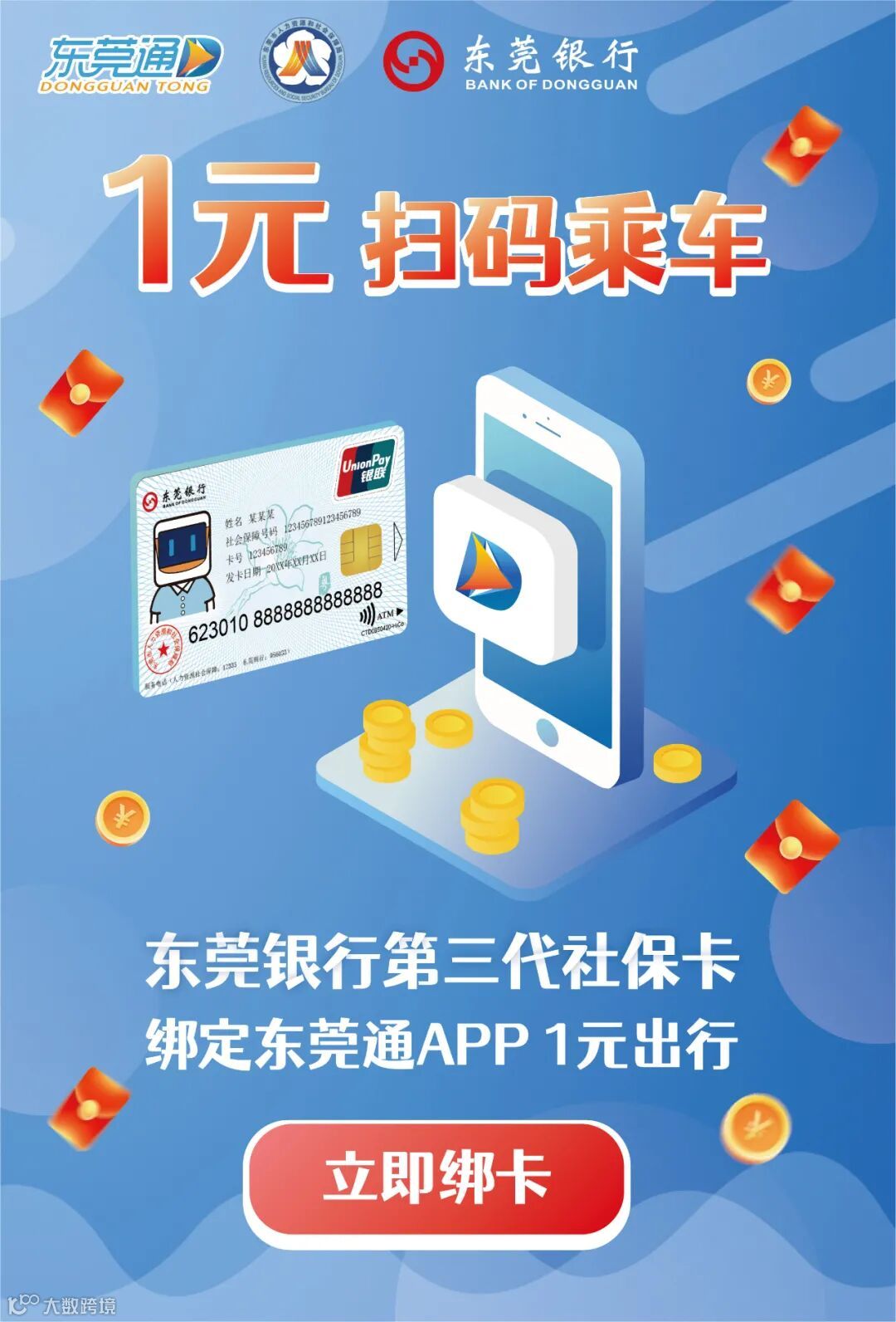 使用东莞银行第三代社保卡绑定东莞通APP,充值成功并设置为默认卡,即可享受扫码乘坐公交、地铁全程1元的出行优惠。