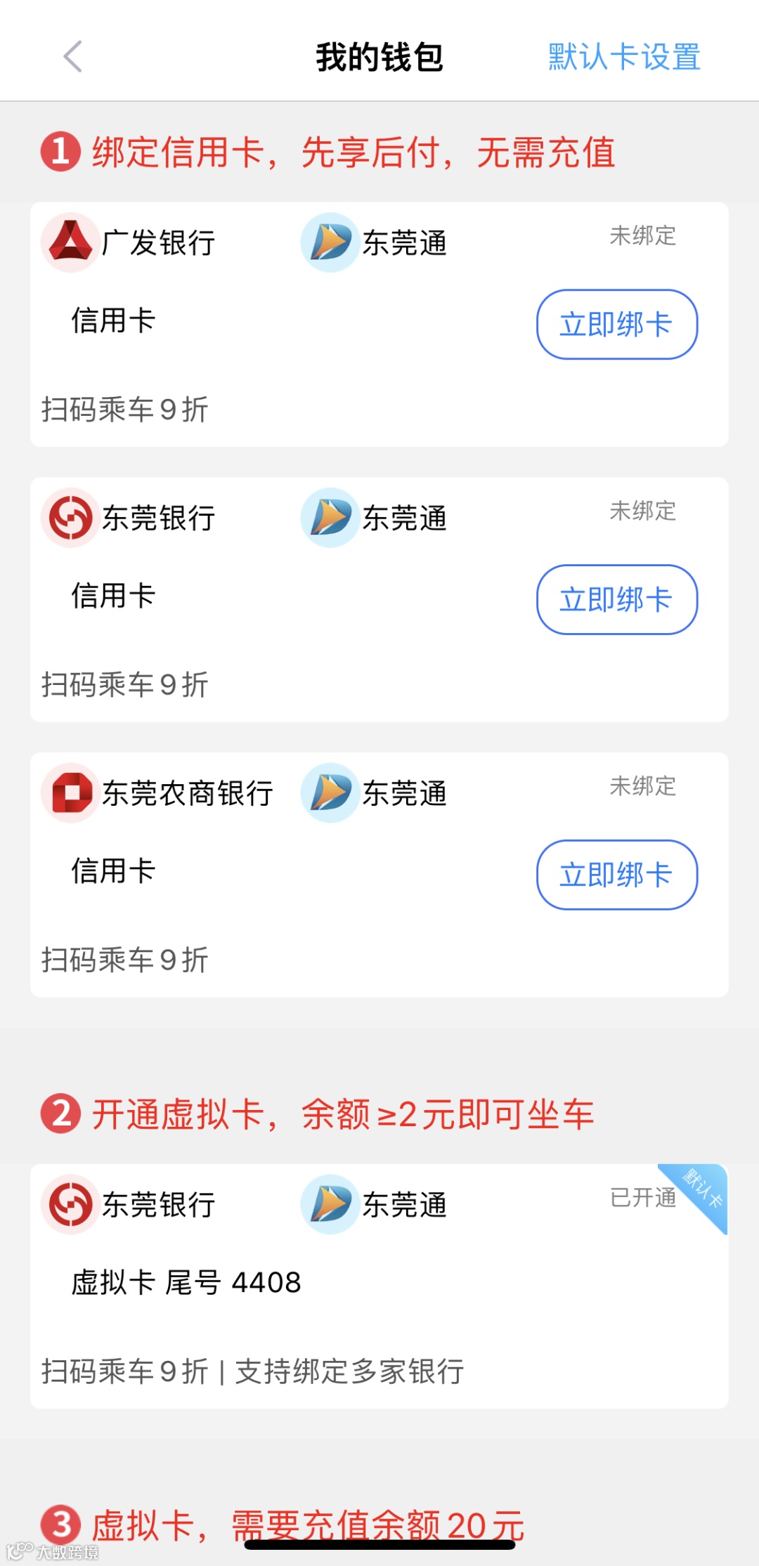使用东莞通APP绑定信用卡后乘车