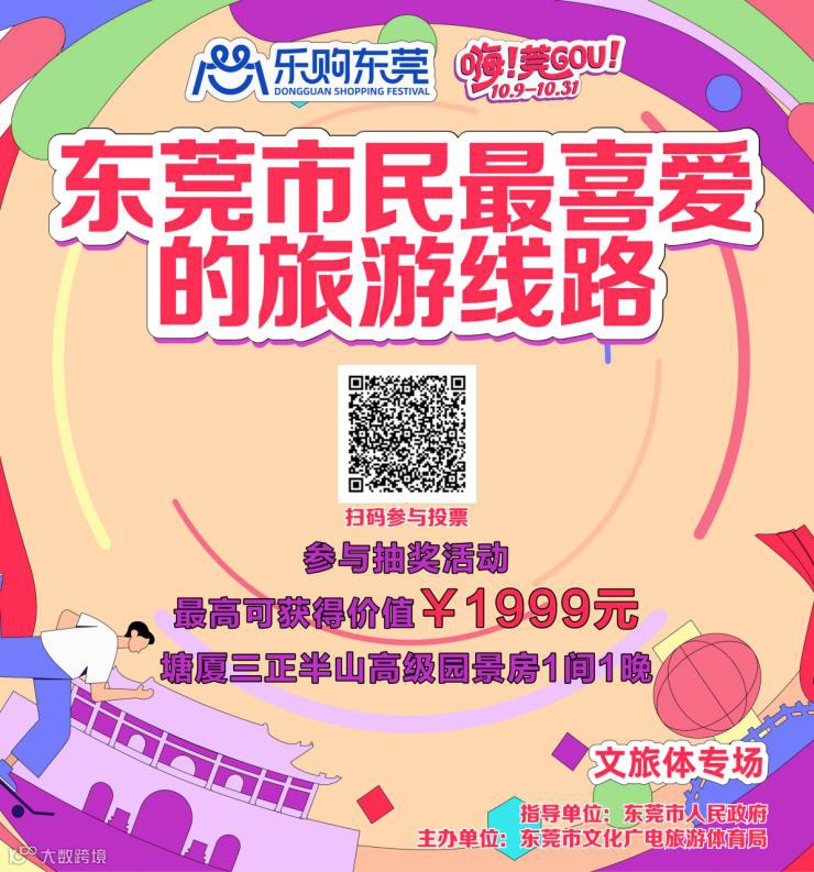 10月9日“东莞市民最喜爱的旅游线路投票”将正式启动。10月9日—10月31日期间,广大市民可通过扫描投票二维码,为自己心仪的线路投票。活动最终将选出3条最具东莞特色、市场认可度高、游客满意度高的旅游精品线路,打造东莞文化旅游品牌名片。