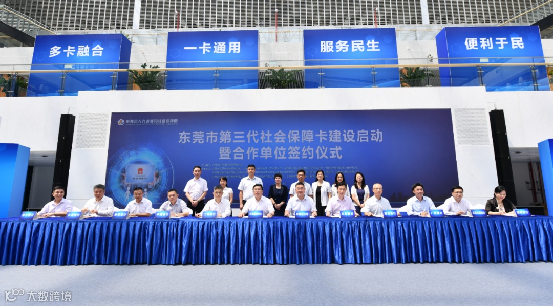2020年8月10日上午,东莞市第三代社保卡建设启动暨合作单位签约仪式在东莞市民服务中心举办。市人社局局长司琪,市社保基金中心主任孙宏伟,市交投集团副总经理、东莞通公司方文革董事长,签约金融机构主要负责人及相关工作人员出席了启动仪式,标志着我市第三代社保卡建设工作进入了实施快车道。