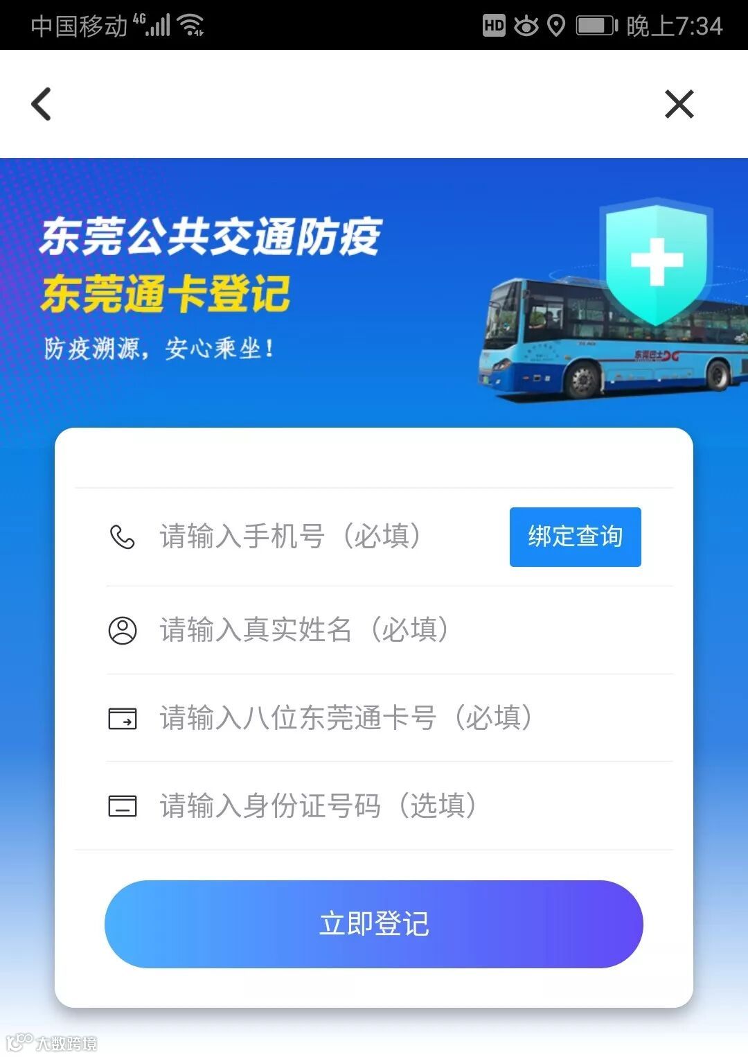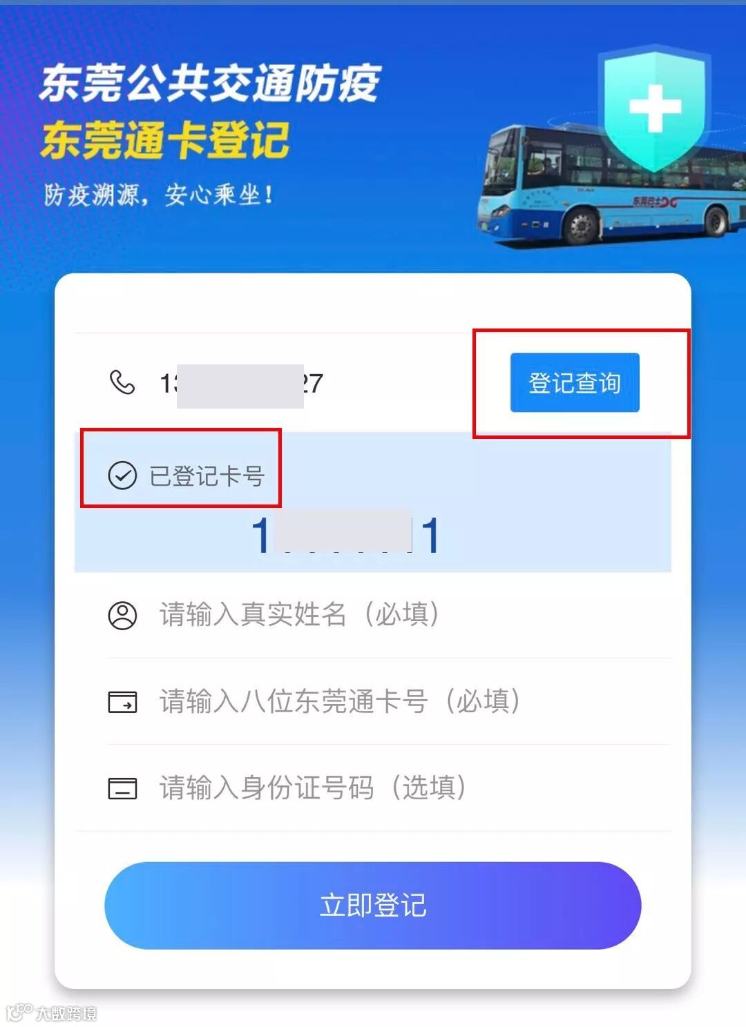2、如发现确诊患者曾与您同行,我们将第一时间以短信通知您,请填写真实手机号码(1个手机号最多登记5个东莞通卡号)。